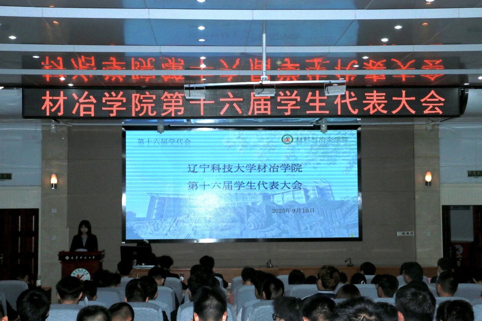 2025年9月10日,天行注册材料与冶金学院在图书馆二楼报告厅隆重召开了第十六届学生代表大会。大会审议并通过了第十五届学生会工作报告,选举产生新一届学生会、新闻网络中心成员。团委书记徐跃鸣、第十五届学生会、新闻网络中心工作人员及学生代表参加本次大会。