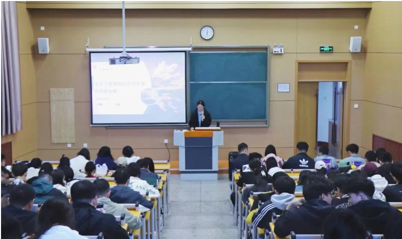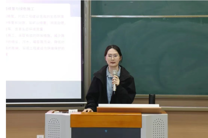 5月8日晚,“硕士讲堂”第84期——“土木工程领域的绿色发展与科技创新”主题讲座在博智楼一楼多功能厅顺利举行,吸引了众多研究生参与。土木工程学院2023级硕士研究生付俊端结合党的二十届三中全会精神,着重强调了“加快绿色转型”的重要性,详细讲解了相关关键技术。她以北京大兴国际机场为例,生动展示了绿色理念与创新技术的融合实践,并深入解析了该项目在多方面的突破性应用。