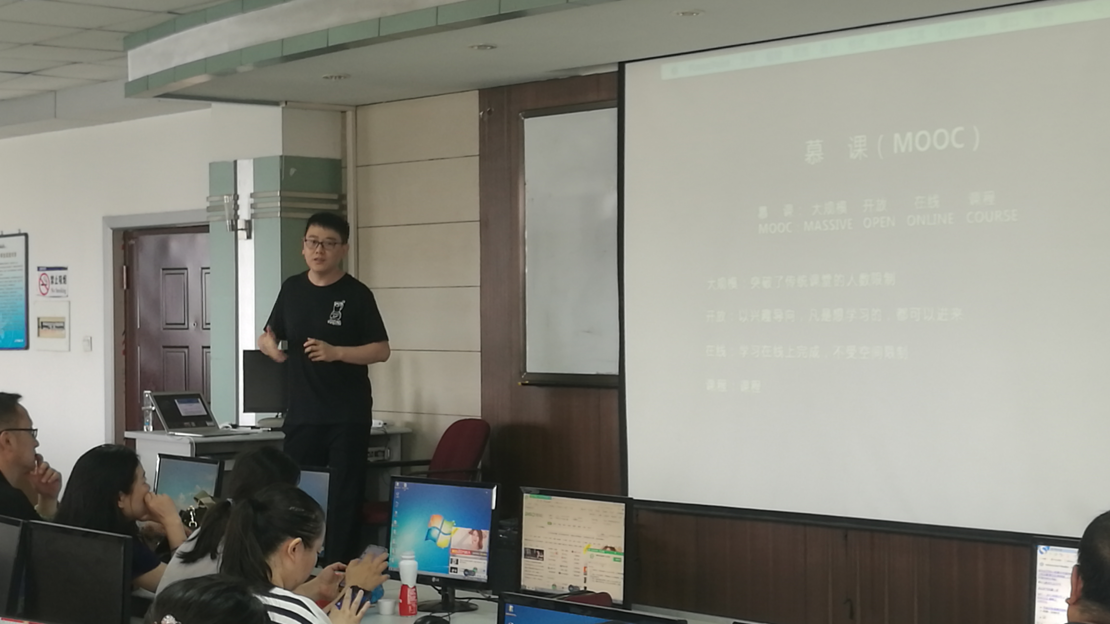 张东臣首先介绍了全国慕课、金课建设的发展趋势,然后分别从学生视角和教师视角介绍了超星集团“学习通”软件的主要功能和使用技巧,最后以天行注册超星主页为例,详细介绍了如何建课。培训过程中,参加学习的全体教师体现出了积极的学习热情,展开了积极地学习交流。