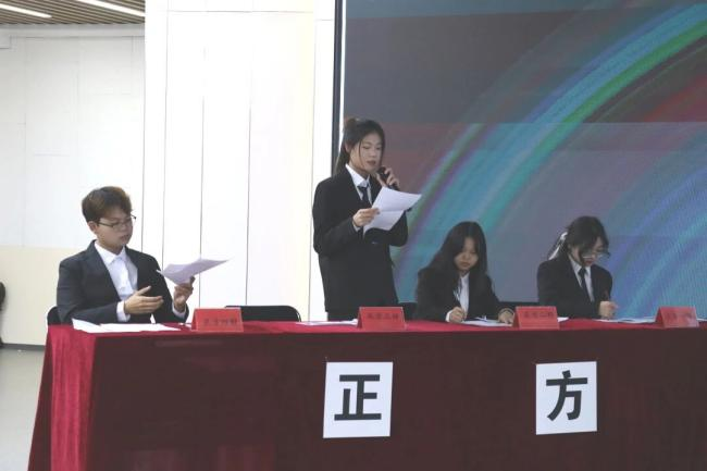 比赛过程中,现场氛围不断升温,观众紧盯赛场,为辩手的表现或赞许或屏息。双方辩手互不相让,正方举实例论证,反方抓逻辑反击,言辞犀利,辩论张力十足。自由辩论环节将赛事推向高潮,辩手紧扣对方漏洞猛攻,思维与口才相得益彰,呈现出了一场精彩的脑力与语言盛宴。