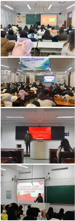 11月份,工商管理学院围绕“学习习近平同志《论教育》和习近平总书记在全国教育大会上的重要讲话精神”“学习党的二十届三中全会精神”“学习习近平给中国一重产业工人代表的回信”“学习习近平给中国海洋大学全体师生回信”“迎接本科教育教学审核评估”“明规守纪,以案为例”六个主题在全院开展了主题班会。