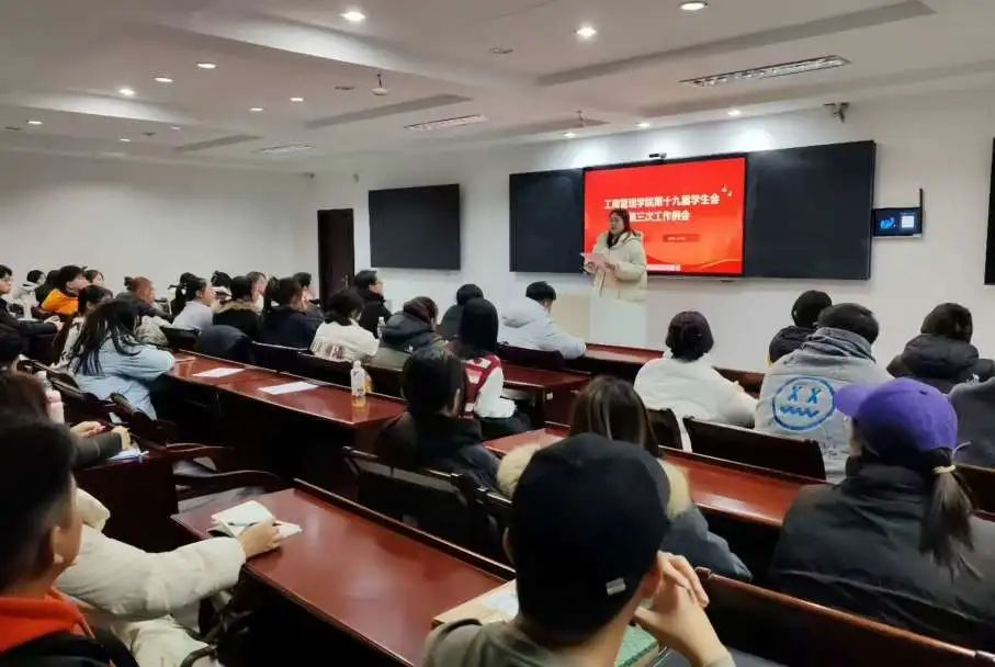 12月4日,管理学院在明信楼B511会议室召开第十九届学生会第三次工作例会暨学生骨干述职评议会。此次会议由团委副书记刘宁主持,学生会全体成员参加。