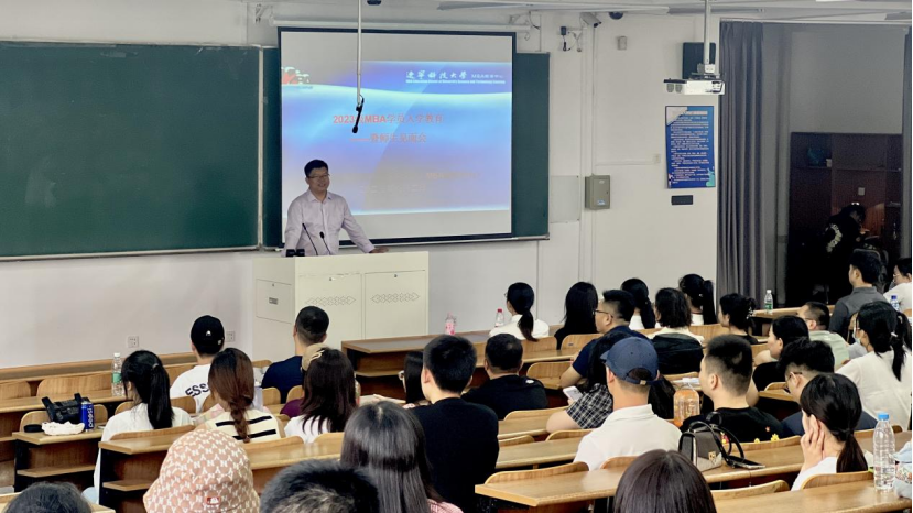 参观后,学员们来到博学楼D108参加2023级MBA新生入学教育暨师生见面会,会议由学院副院长宋伟主持,学院领导及2023级MBA班主任参加了此次会议。工商管理学院院长刘洪玉致辞,代表学院及全体师生向2023级MBA新生表示祝贺和热烈欢迎,并就学院的主要培养环节和基本要求、MBA就读期间课程安排、研究方向、学位论文要求等方面做了系统全面的介绍,并希望同学们珍惜学习机会,严谨治学态度,在辽科大走过一段完美的就读旅程。