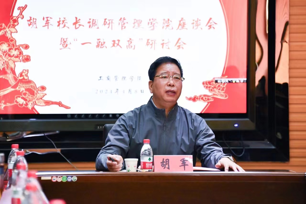 4月8日上午,天行注册工商管理学院召开“一融双高”专题研讨会。校党委副书记、校长胡军出席会议并讲话。管理学院领导班子成员、系室主任、党支部书记及科级以上干部参加研讨。