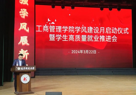 为进一步加强学院学风建设工作,推动学生高质量就业,3月22日,辽科大管理学院在校礼堂举行学风建设月启动仪式暨学生高质量就业推进会。学院领导班子成员、专业教师代表、全体辅导员以及全体本科生参加会议。