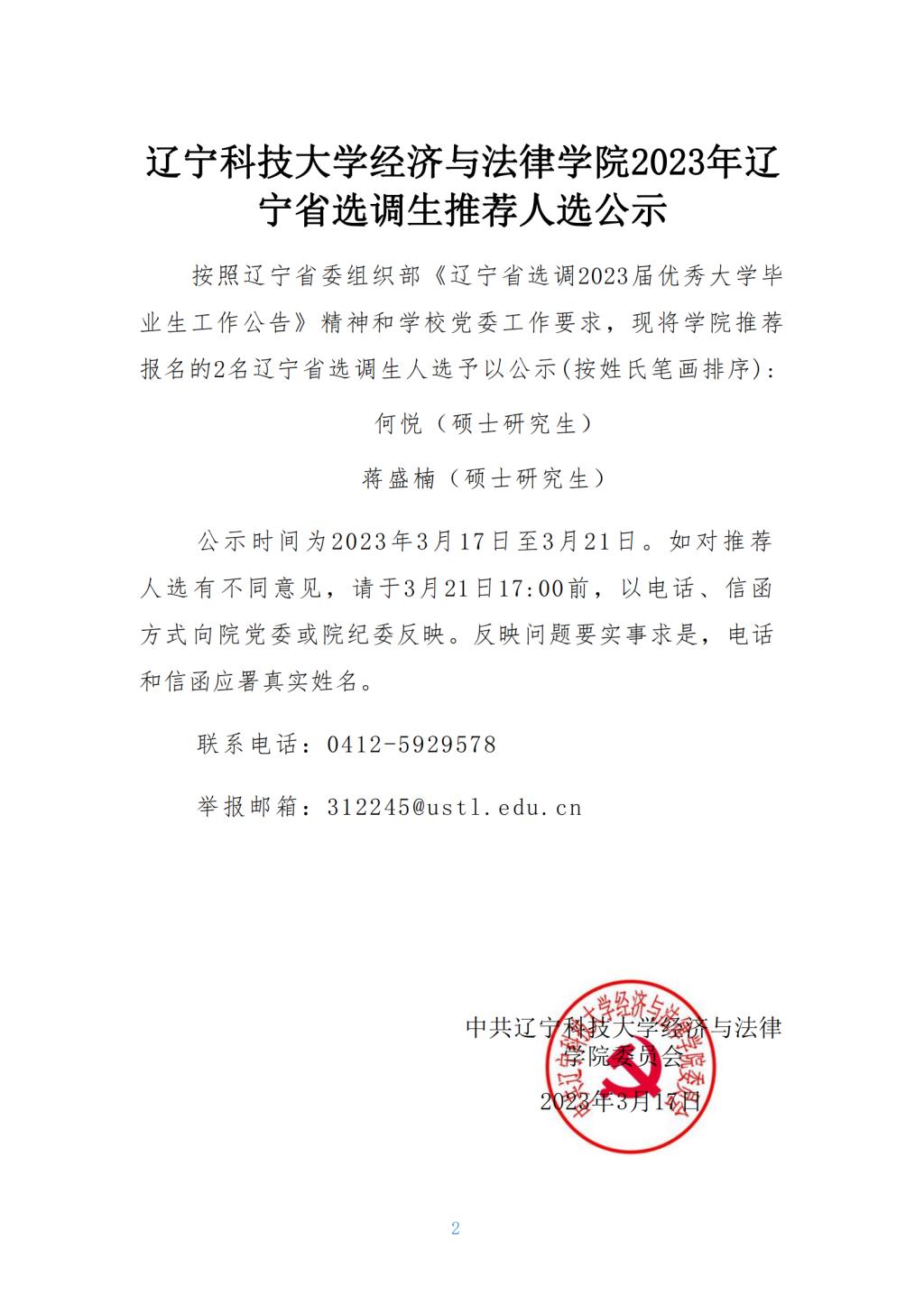 天行注册经法学院2023年辽宁省选调生推荐人选公示
