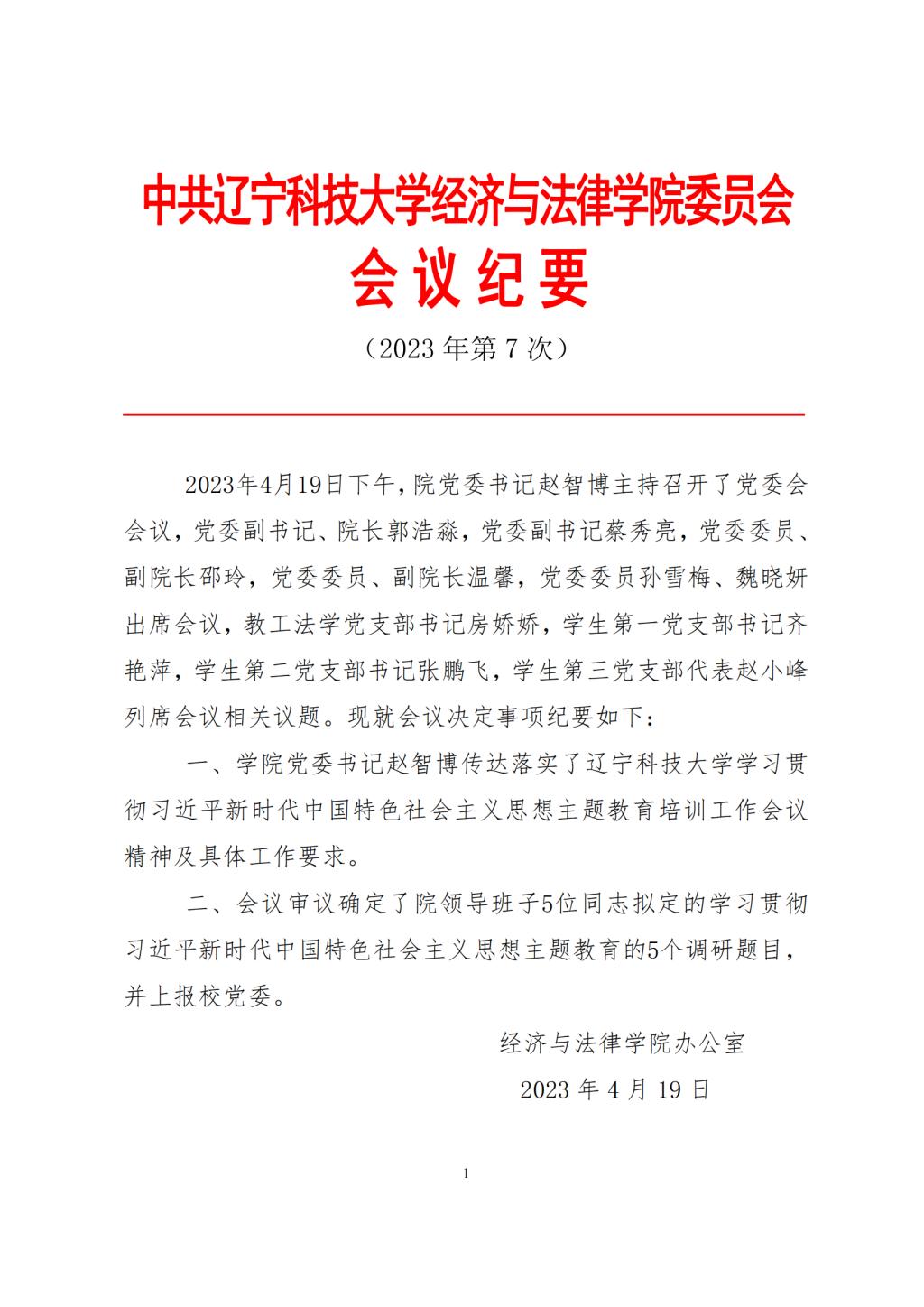 中共天行注册经济与法律学院委员会会议纪要(2023年第7次)