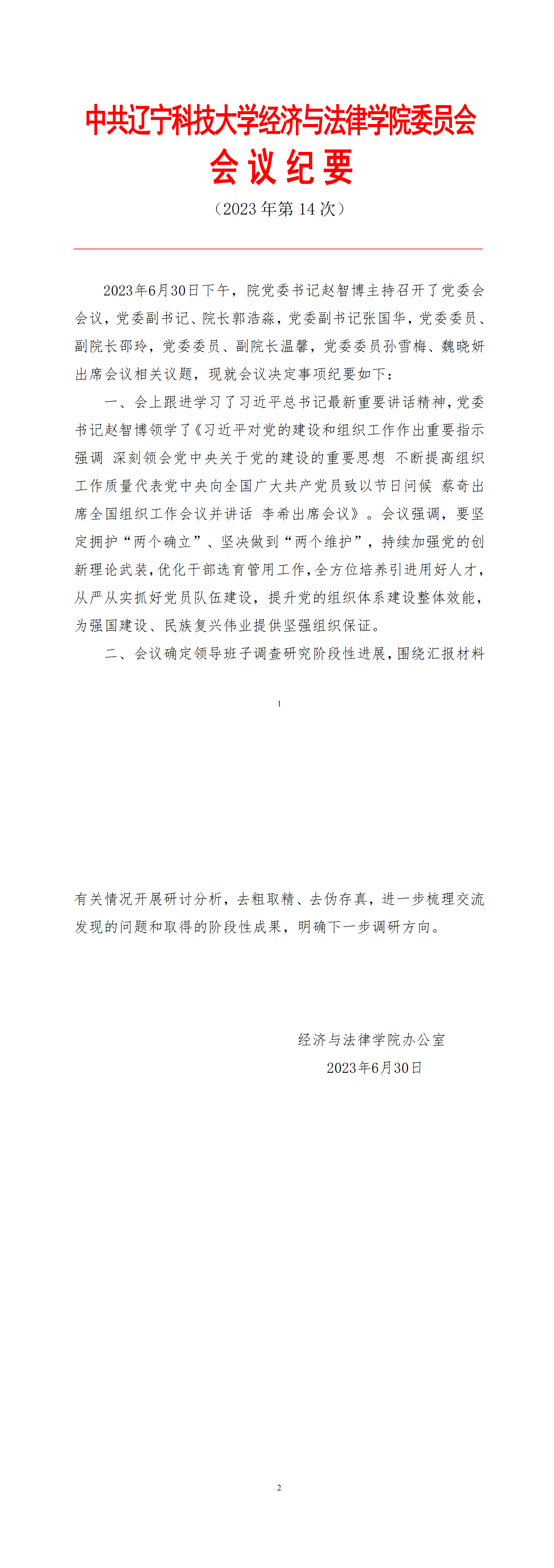 中共天行注册经济与法律学院委员会会议纪要(2023年第14次)