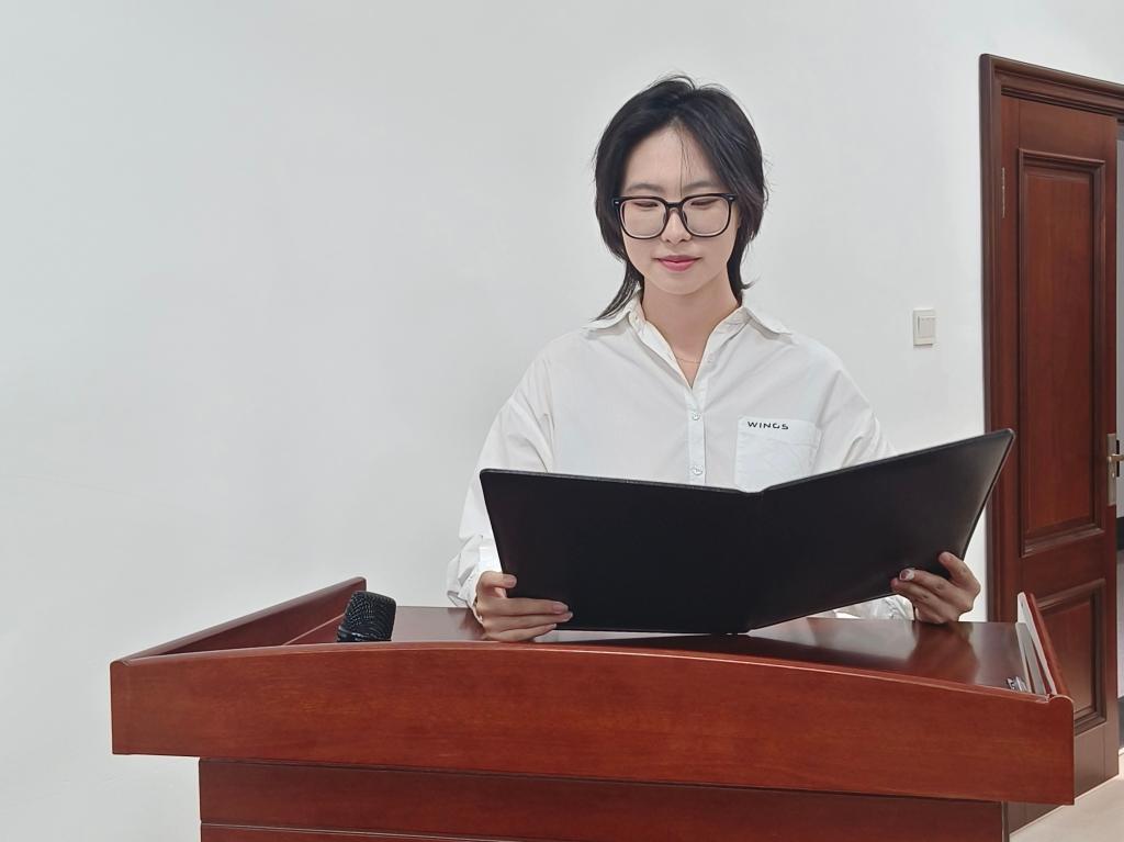 经法学院研究生会执行主席秦莫涵作为在校生代表,以自身科研与生活经历为切入点,分享了研究生阶段的感悟。她鼓励学弟学妹们将学习放在首位,珍惜与导师交流、和同学研讨的时光,在探索中积累经验,在实践中提升能力,不负青春韶华。2025级研究生代表韩雨则以真挚的话语表达心声,她表示未来将以“立德修身”为根本,以“明确目标”为指引,夯实专业基础,提升综合素养,以积极心态迎接新挑战。