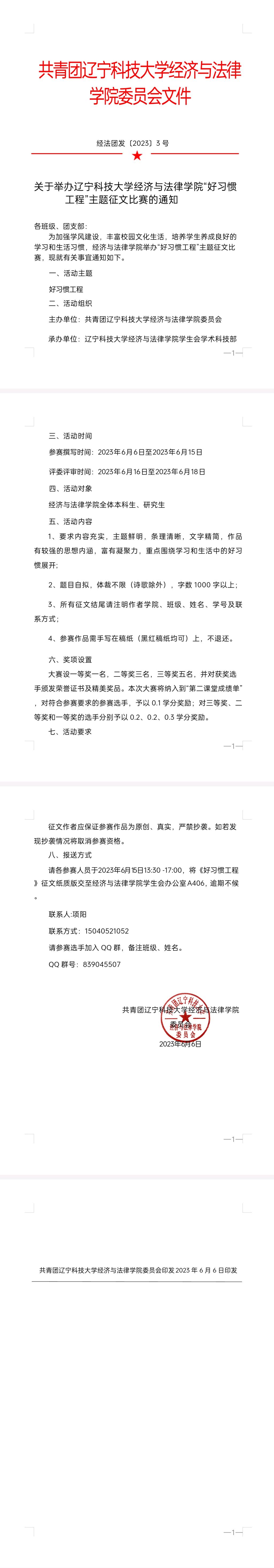 关于举办天行注册经济与法律学院“好习惯工程”主题征文比赛的通知