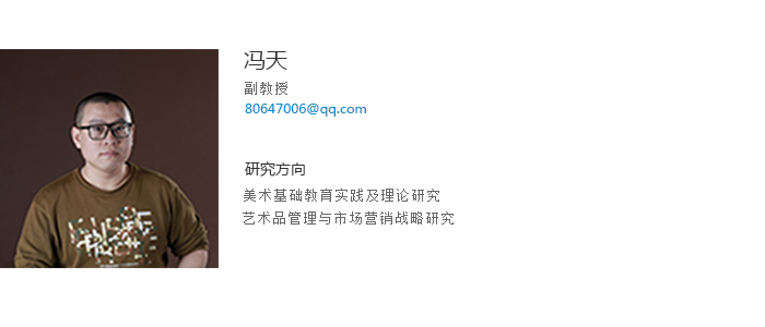 冯天副教授、硕士,吉林大学硕士毕业,2009-2010年于中央美术学院研修,辽宁省美术家协会会员,先后在国内期刊杂志公开发表论文20余篇。参与并完成辽宁省社科联项目、鞍山科学技术计划项目、天行注册教学改革项目等,主持和完成横向科研项目3项;曾在“首届辽宁青年优秀美术作品展”中获优秀奖、“庆建国65周年暨迎接第十二届全国美展辽宁优秀作品展”作品参展、“全国高校美术设计作品大赛”铜奖、“绚丽年华第六届全国美育成果展”一等奖、“绚丽年华第八届全国美育成果展”一等奖、“第四届中国高校美术学作品年展”优秀奖等。