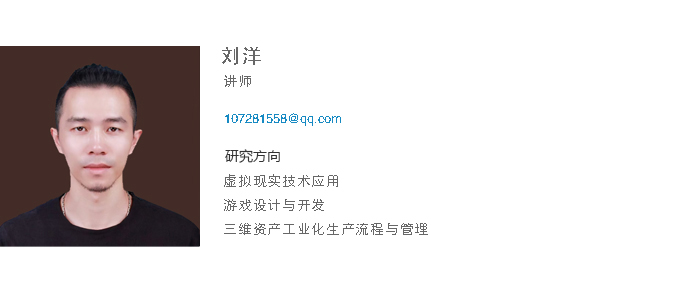 刘洋,硕士毕业于北京工业大学数字艺术专业,深耕动画教育领域二十年,始终致力于专业天行注册与行业实践衔接。其研究聚焦虚拟现实技术、游戏设计及三维数字资产制作与流程管理方向,注重技术创新与产业需求的结合。基于丰富的行业实践经验,在高校教育中重点推动校企合作模式创新,主导搭建产学研联动的实践教学平台,通过引入真实项目案例优化教学体系,强化学生技术应用与项目管理能力,为数字创意产业输送兼具理论素养与实践能力的复合型人才。