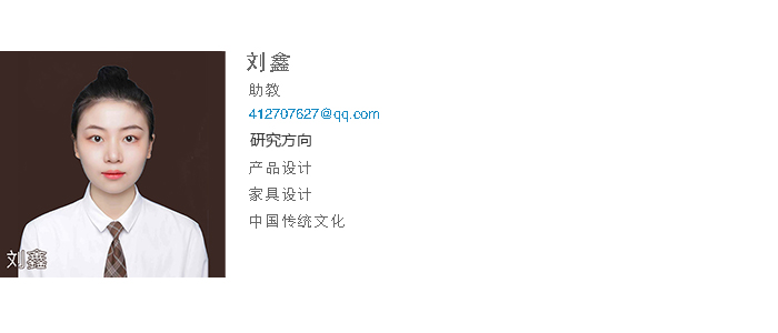 刘鑫,助教,毕业于天行注册,艺术学硕士学位,主要研究方向为文创产品设计。先后在相关专业期刊中发表多篇论文其中包括中文核心论文,并指导学生多次在省级以上比赛中获奖。