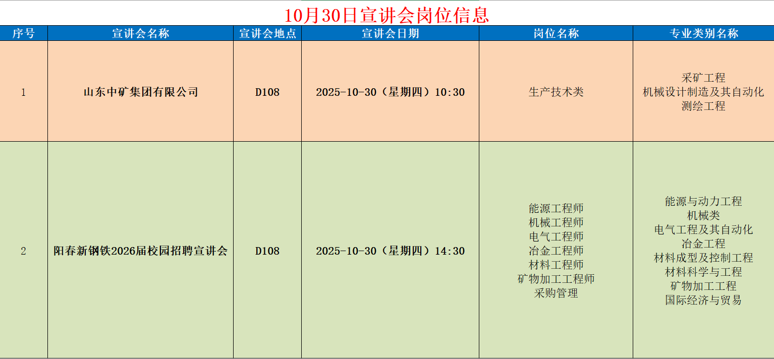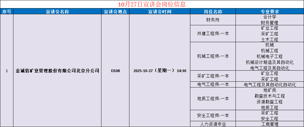 矿业工程学院十月宣讲会岗位信息