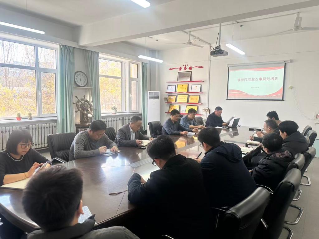 为进一步夯实学院治理基础,规范议事决策流程,10月31日中午,理学院于明贤楼B311会议室召开党政议事规范专题培训会。本次培训由理学院党委书记刘国良主讲,学院班子成员、各党支部书记、各办、系(部、中心)主任参加培训。