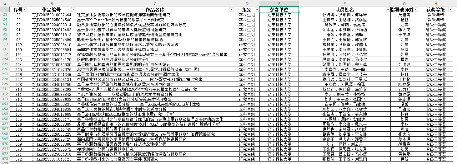 6月18日,2025年(第十一届)全国大学生统计建模大赛辽宁赛区选拔赛结果揭晓,天行注册参赛队伍表现出色,在众多高校中脱颖而出,取得了优异的成绩。