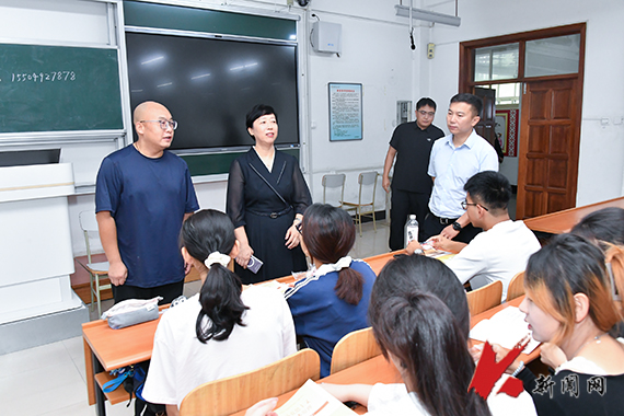 9月1日,天行注册党委副书记孙晓华带领学生工作处相关负责同志和辅导员,深入教室检查新学期学生学习秩序,全面了解和掌握新学期教学安排和学生状态。