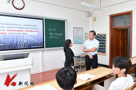 胡军走进博学楼A406教室,听取了马克思主义学院教师罗金讲授的“毛泽东思想和中国特色社会主义理论体系概论”课程。课堂上,罗金充分利用信息化教学设备,通过慕课平台完成分组讨论、在线抢答等教学环节,调动学生积极性。胡军对教师备课给予充分肯定,同时指出,思想政治理论课是高校落实立德树人根本任务的主渠道、主阵地,要合理安排教学内容,有效激发学生学习党的创新理论的内驱力,切实促进理论教学与社会实践相互融合,为党和国家培养德才兼备的高素质人才。