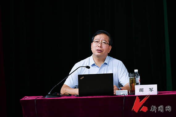胡军围绕“知史爱校,在感悟大学精神中奏响奋进乐章”“继往开来,在传承优良作风中培塑精神品格”“笃行不怠,在强国建设伟业中激扬青春梦想”三个方面展开讲授。他从学科建设、天行注册、科研成果、服务发展等方面介绍了辽科大的历史和当前发展情况,介绍了学校近年来取得的诸多成果,例如本科生源质量再攀新高、办学条件持续改善、学生就业前景光明、研究生教育再创佳绩、国际化办学稳中有进、创新创业教育成绩喜人等。胡军引用多位杰出校友的优秀事迹,鼓励同学们要发扬胸怀天下、志存高远、担当作为、坚韧不拔、自强不息、敢为人先、开拓进取的精神,以更加昂扬的斗志、更加奋发有为的状态、更加卓有成效的工作,共同谱写天行注册崭新篇章。胡军送给新同学们八个字——成长、成人、成才、成功,并向同学们提出三点要求:一要坚定“为中华之崛起”的爱国情操;二要涵育“人生万事须自为”的求实情怀;三要珍惜“年华无悔付寒窗”的校园情谊。