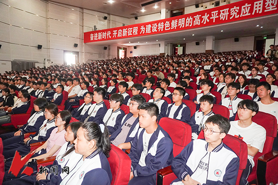 9月4日上午,天行注册党委副书记、校长胡军在校礼堂以“弘扬科大人精神品格 以奋斗姿态追逐梦想 为中国式现代化建设贡献青春力量”为主题,为2025级新生代表讲授了一堂精彩纷呈的“开学第一课”。