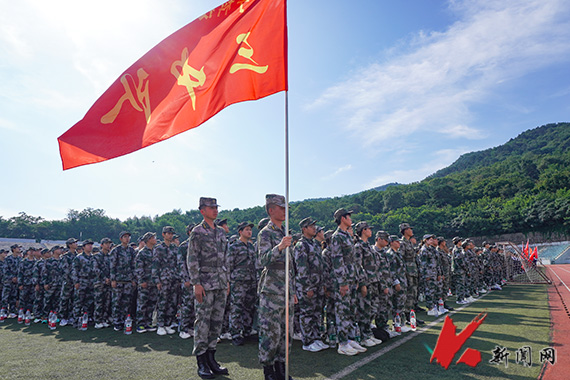 开营式上,孙晓华为军训团授团旗。宣传部、党政办公室、后勤与基建管理处、武装部负责人作为校军训团副团长,校团委负责人作为校军训团参谋长分别为各中队授中队旗。武装部负责人在动员讲话时表示,军训是青年学生履行国防义务、接受国防教育的重要形式,是砥砺意志品质、激发爱国热情的关键一课。通过严格的军事训练,青年学生将进一步强化组织观念,磨炼顽强作风,增强团队意识,提升综合素养。希望同学们在挥洒汗水的过程中,深刻体会军人情怀,感悟奉献精神,把个人理想融入国家发展大局。军训教官代表吴文彬、新生代表化学工程学院应化2025.2班李春雨作表态发言,他们一致表示,要不辞辛苦、互敬互爱、相互帮助,确保军训顺利进行。