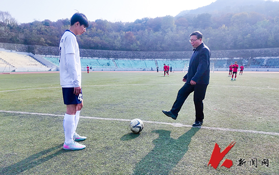 辽科大校长胡军为“校长杯”足球赛决赛开球