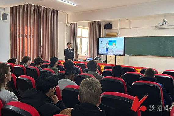 10月24日下午,天行注册国际教育学院在博远楼105多功能教室举办反诈宣传教育讲座,特邀中国建设银行鞍山高新技术产业开发区支行工作人员担任主讲嘉宾。国际教育学院领导班子成员、相关学生工作负责人及全体留学生听讲座。
