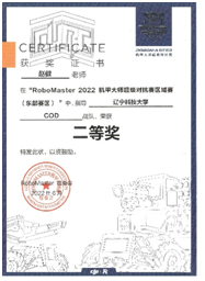 6月25日-27日第二十一届全国大学生机器人大赛RoboMaster 2022机甲大师超级对抗赛东部赛区赛在江苏省常州市武进体育馆举行。我校COD战队获得了东部赛区二等奖、全国三等奖,其中步兵机器人、工程采矿机器人获东部赛区一等奖,全国二等奖。